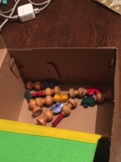 Ce qui est nouveau et difficile dans le jeu de la BoitAbling, c’est que Chloé ne verra pas les bouchons qui tombent dans la boite en faisant « bling ». Son travail sera de choisir la bonne carte, pour ranger tous les bouchons ( ou cailloux) qui seront dans cette boite : un bouchon sur chaque point.